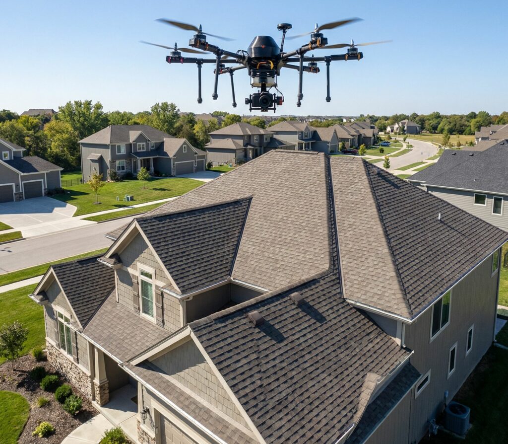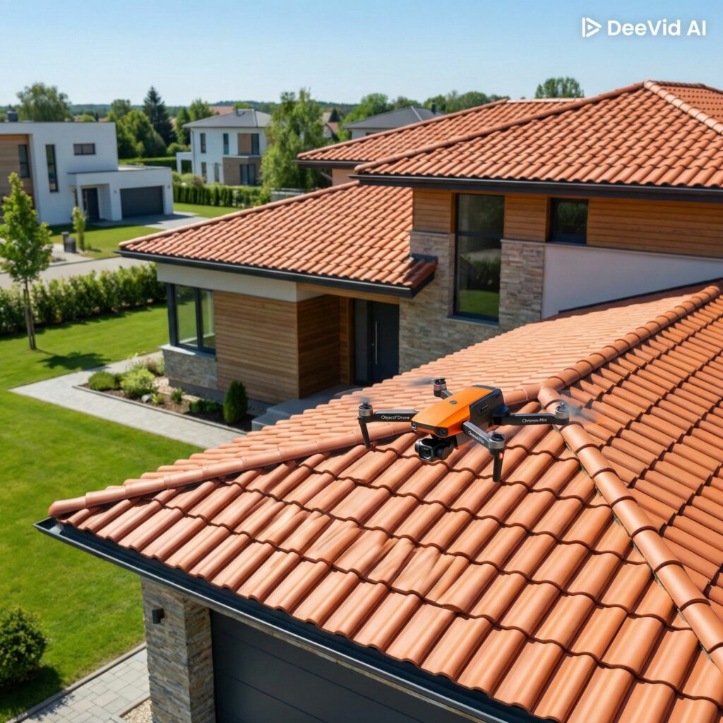 L’inspection de toiture par drone permet d’identifier rapidement les anomalies visibles sur les toits de maisons, immeubles ou bâtiments industriels.